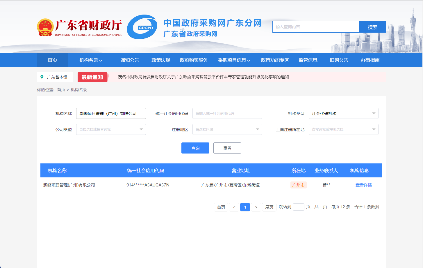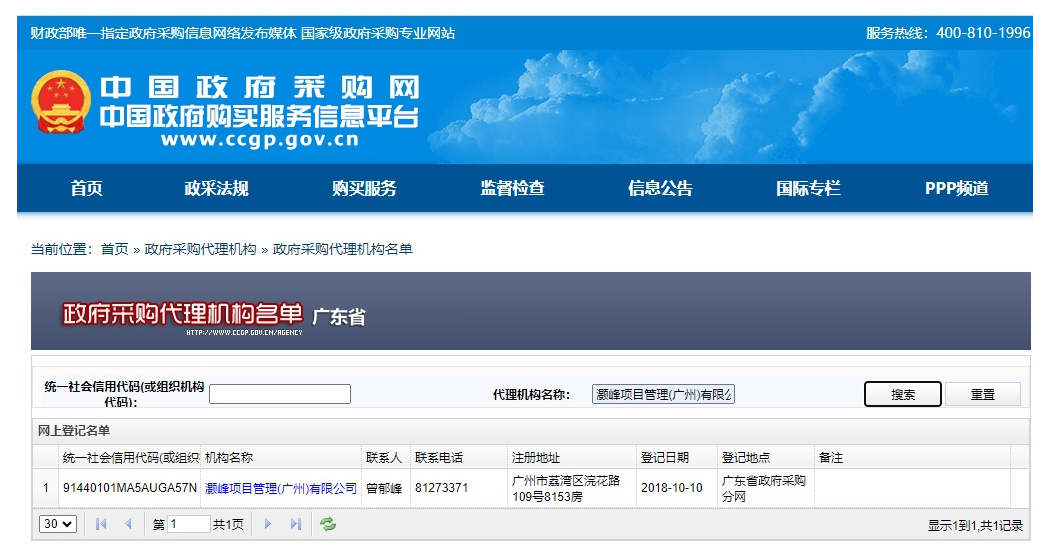 广州市政府采购网备案截图